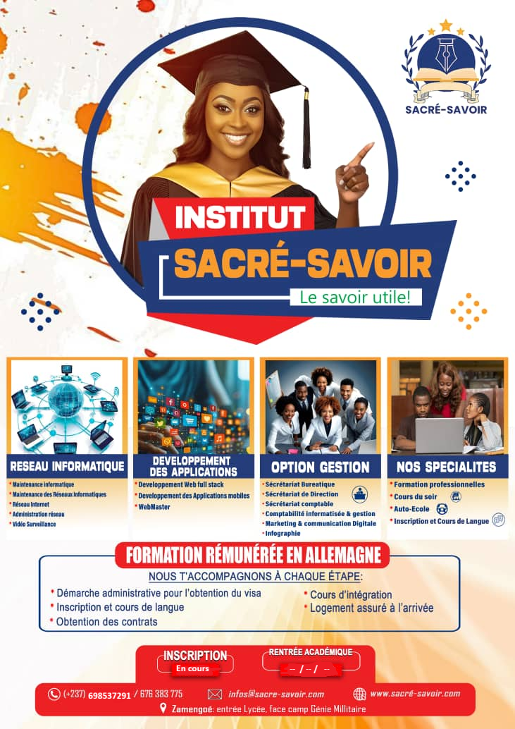 SACRE-SAVOIR est une école de formation en et informatiques, située à ZAMENGOE. Créée en 2022, reconnue pour son expertise technologique, SACRE-SAVOIR se consacre à former des talents capables de répondre aux défis de la sécurité numérique et des infrastructures réseau.